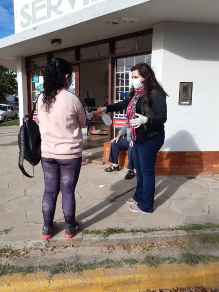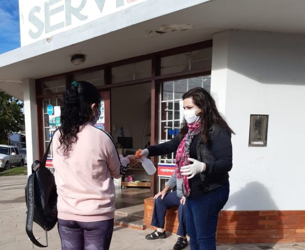 Además, integrantes de la JR colaboraron en las filas de dichos establecimientos con la higiene de manos mediante rociadores con alcohol.