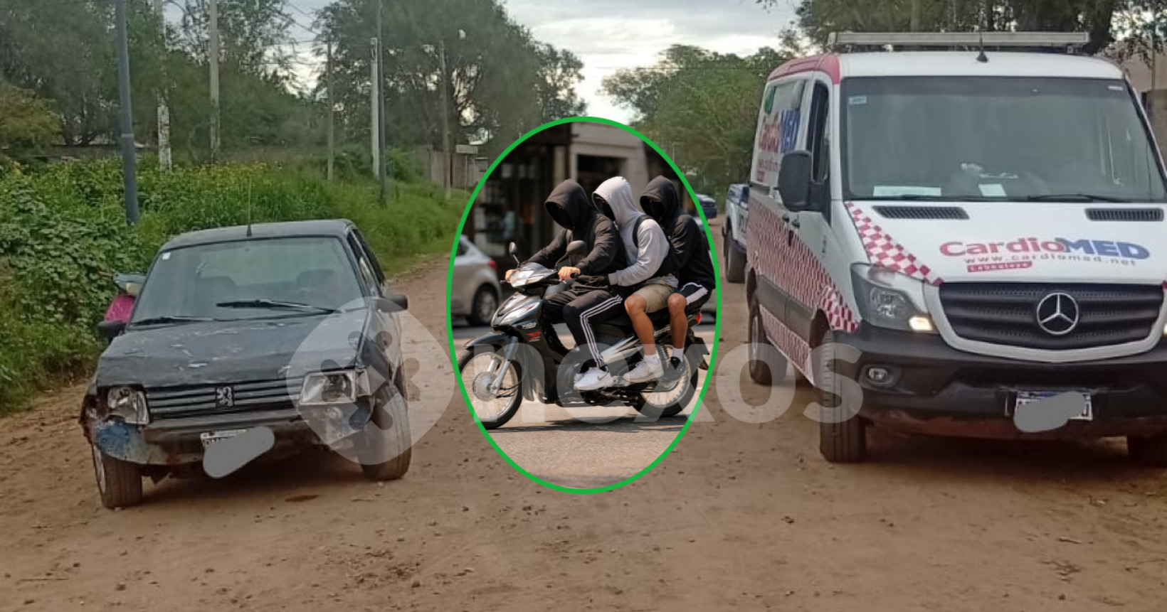 Laboulaye. Iban tres en una moto: chocaron contra un auto