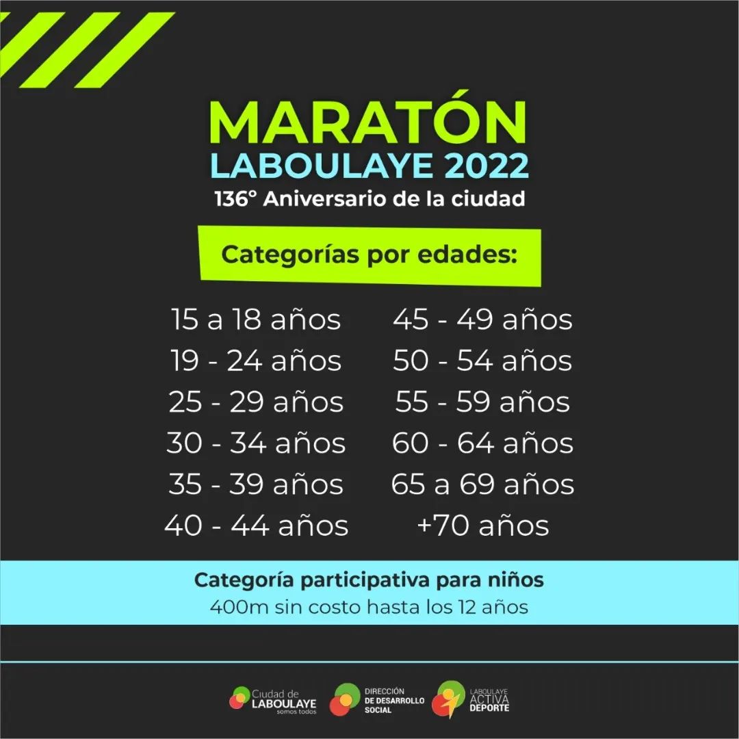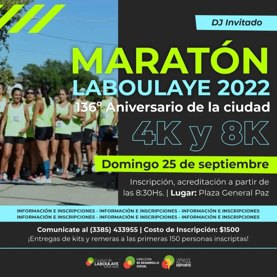 En el marco de los festejos por el aniversario 136 de Laboulaye, el próximo domingo 25 de Septiembre se desarrollará la Maratón de Laboulaye.