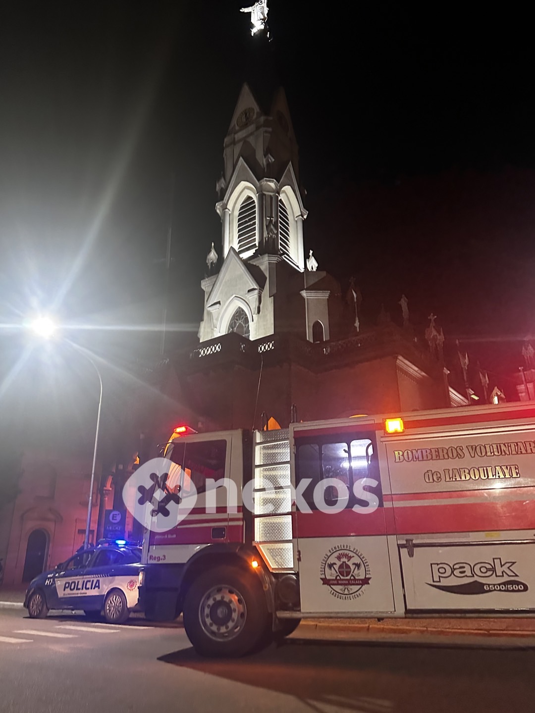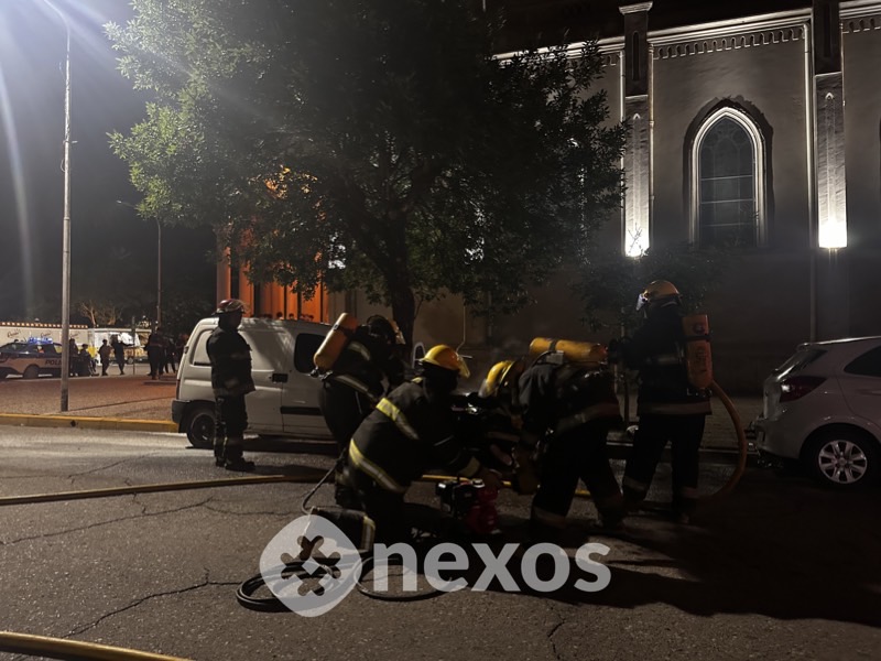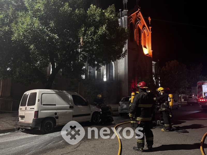 Según testimonios recogidos en el lugar del hecho, el fuego alcanzó a un automóvil Peugeot Partner que se encontraba frente a la iglesia.
