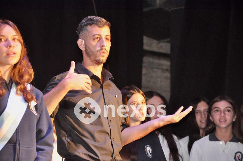 El Himno Nacional Argentino fue entonado conjuntamente entre docentes y estudiantes, contando con la presencia de uno de ellos realizando una interpretación en Lengua de Señas Argentina.