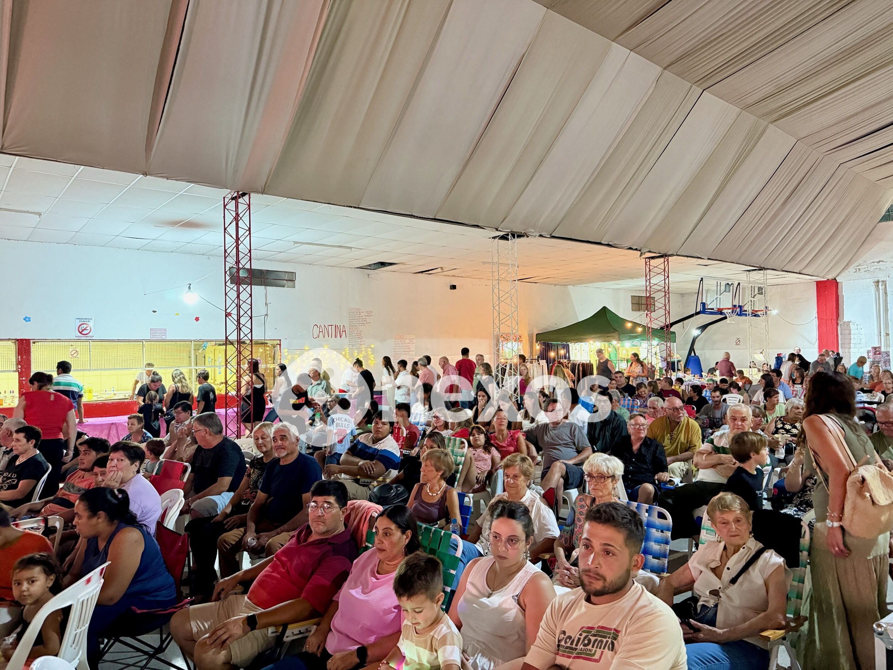 Si bien el evento estaba previsto en la Plaza San Martín y sus alrededores, debió trasladarse al salón del Club Atlético Estudiantes a raíz de un pronóstico de lluvias.
