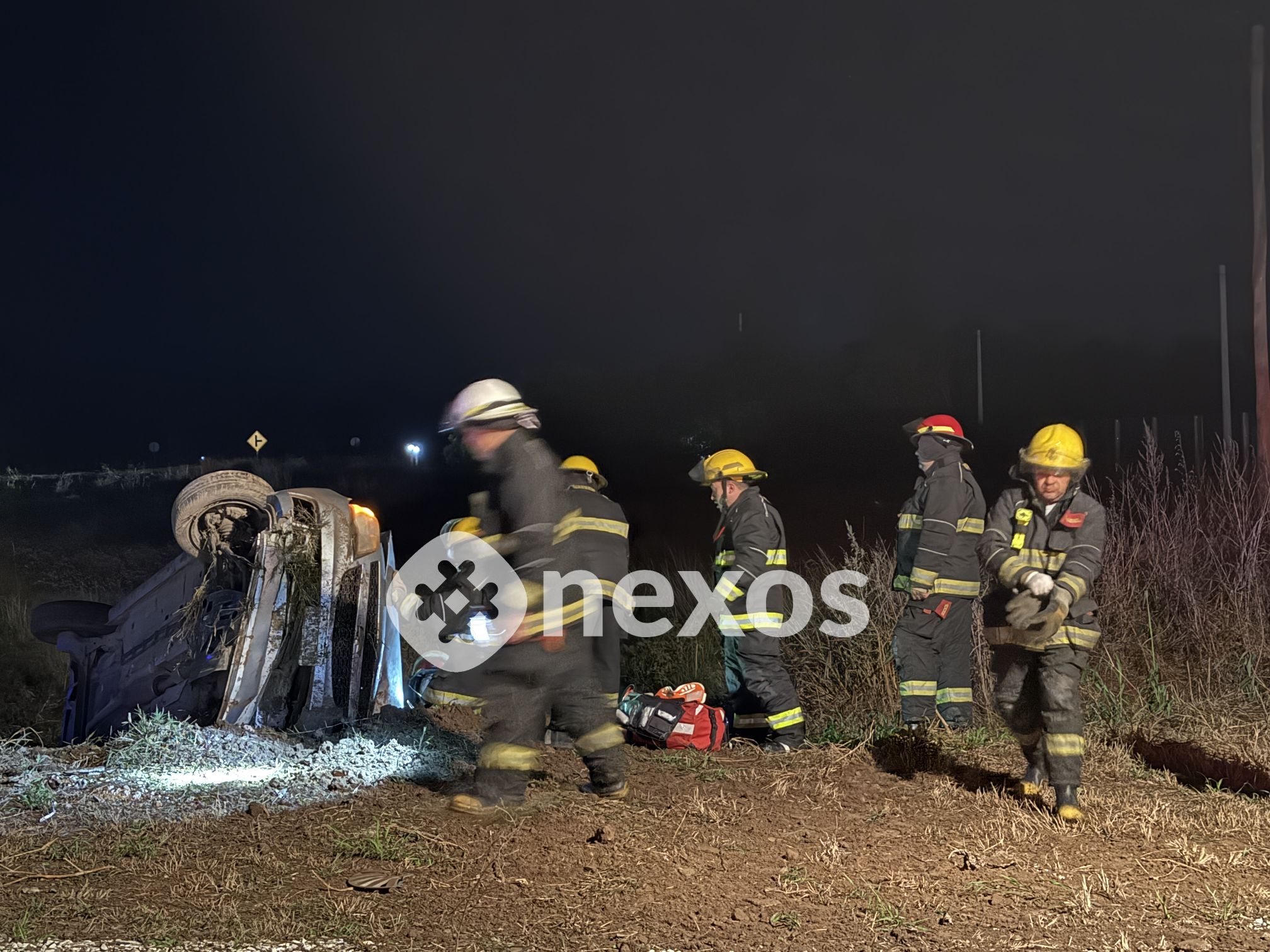 Este último se hallaba atrapado en el interior del coche, en estado consciente y, al momento de publicarse la nota presente, estaba siendo rescatado a través del accionar de los brigadistas.