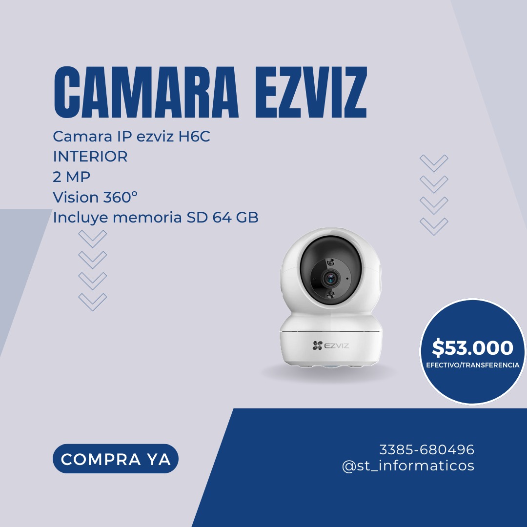 Cámara IP EZVIZ H6C (Interior) – 2 MP, visión 360°, incluye memoria SD 64 GB: $53.000 (efectivo o transferencia).