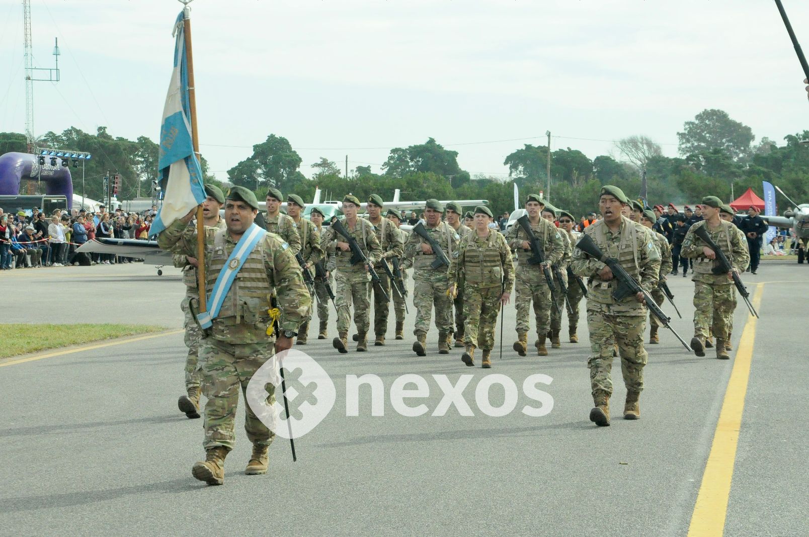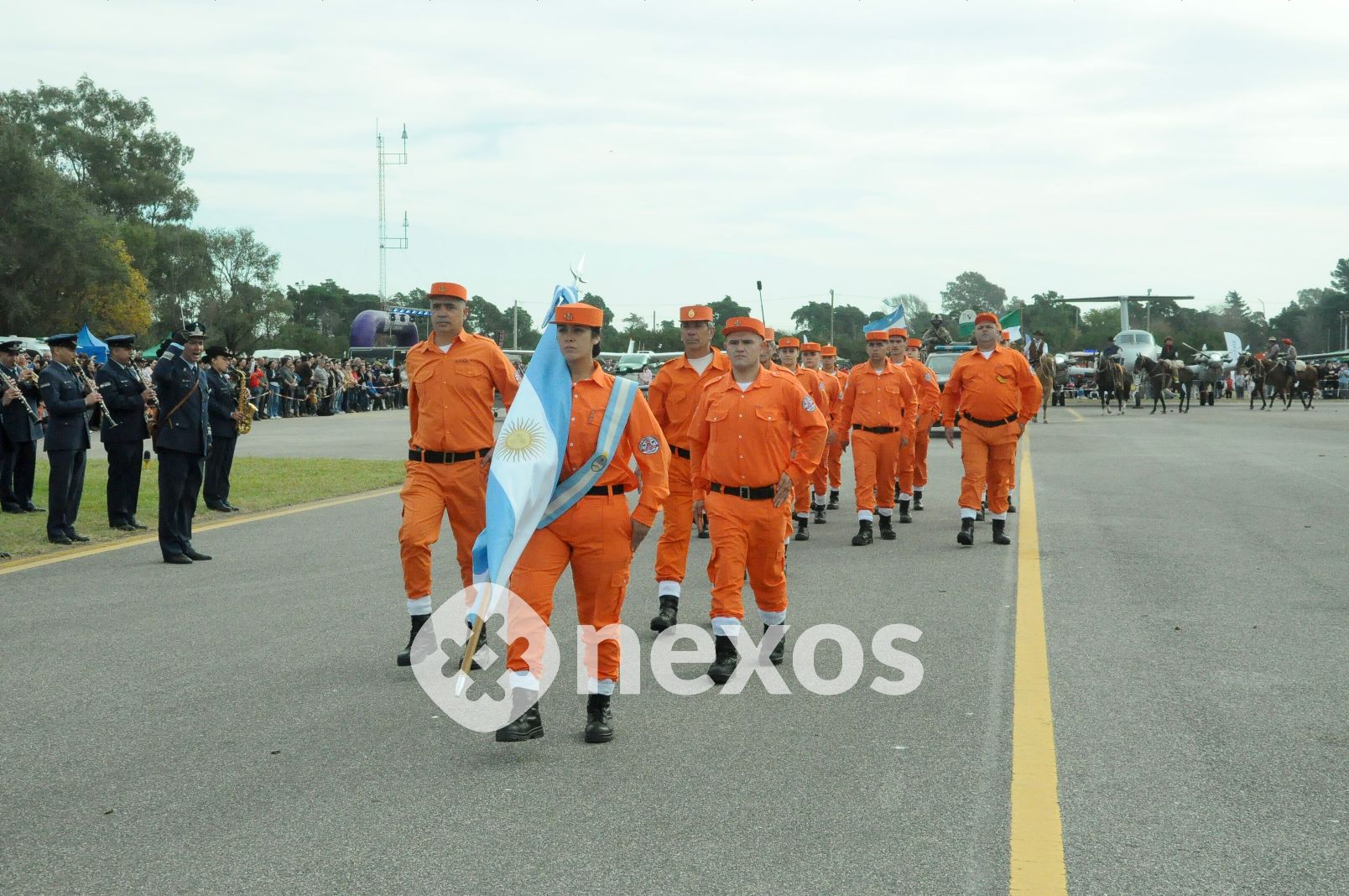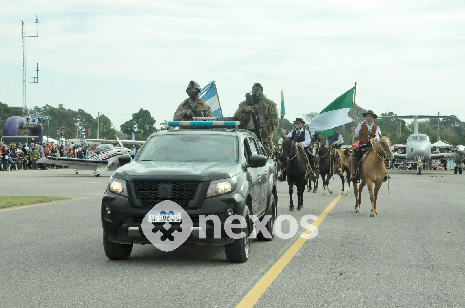 Otra de las grandes atracciones resultó la exhibición terrestre a través de la Pista del Aero Club, que sumó a cuerpos militares, policiales y civiles, incluyendo al Regimiento de Granaderos a Caballo “General José de San Martín”, uno de los que cuenta con mayor tradición histórica.