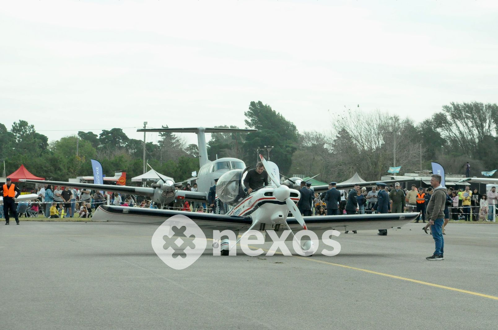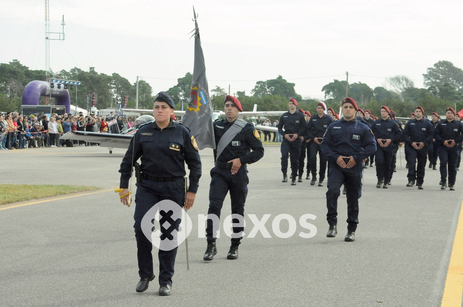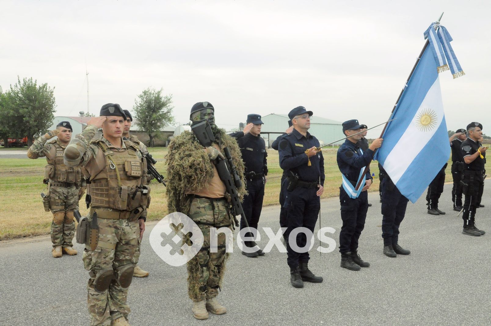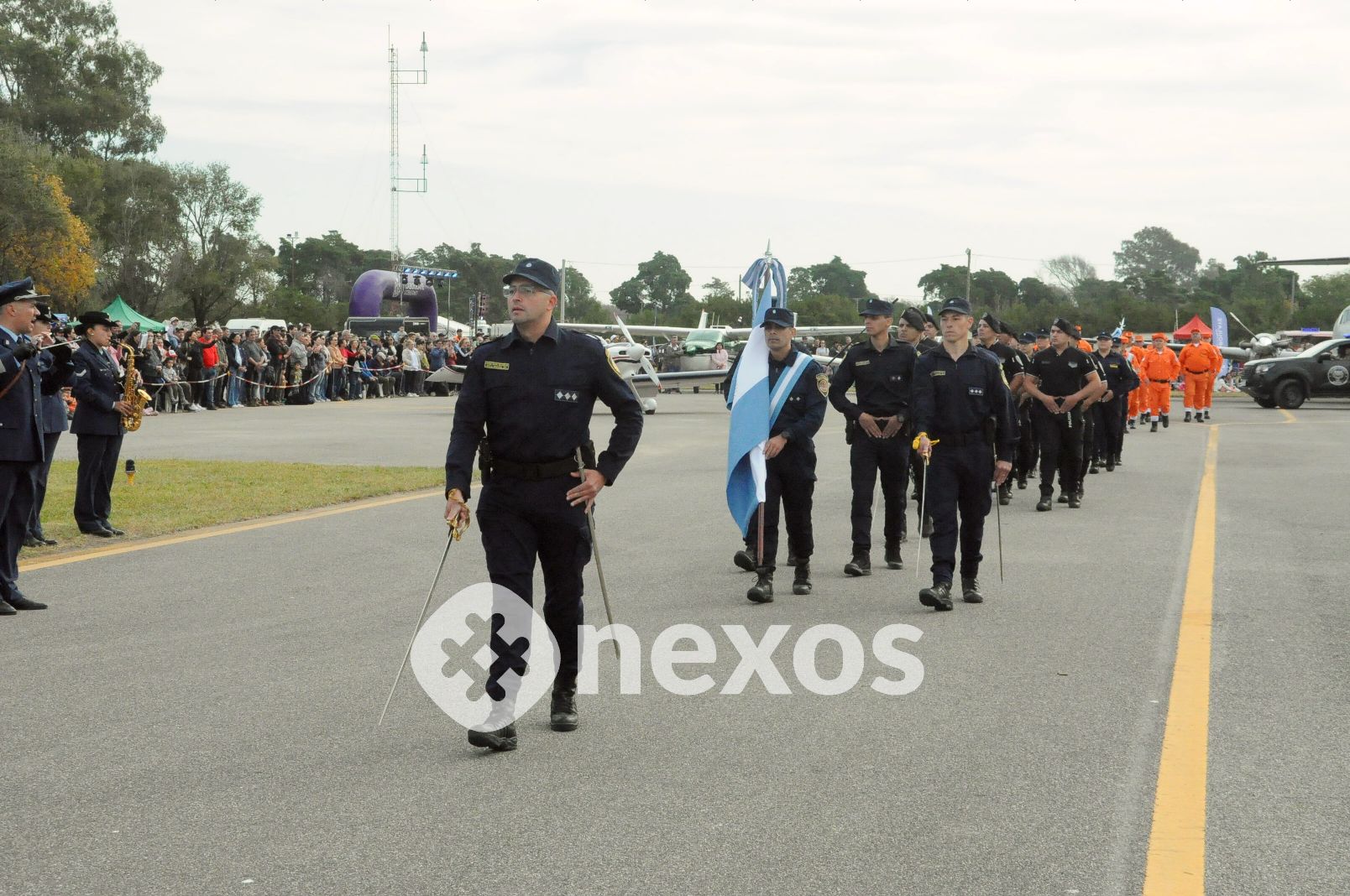 Otra de las grandes atracciones resultó la exhibición terrestre a través de la Pista del Aero Club, que sumó a cuerpos militares, policiales y civiles, incluyendo al Regimiento de Granaderos a Caballo “General José de San Martín”, uno de los que cuenta con mayor tradición histórica.