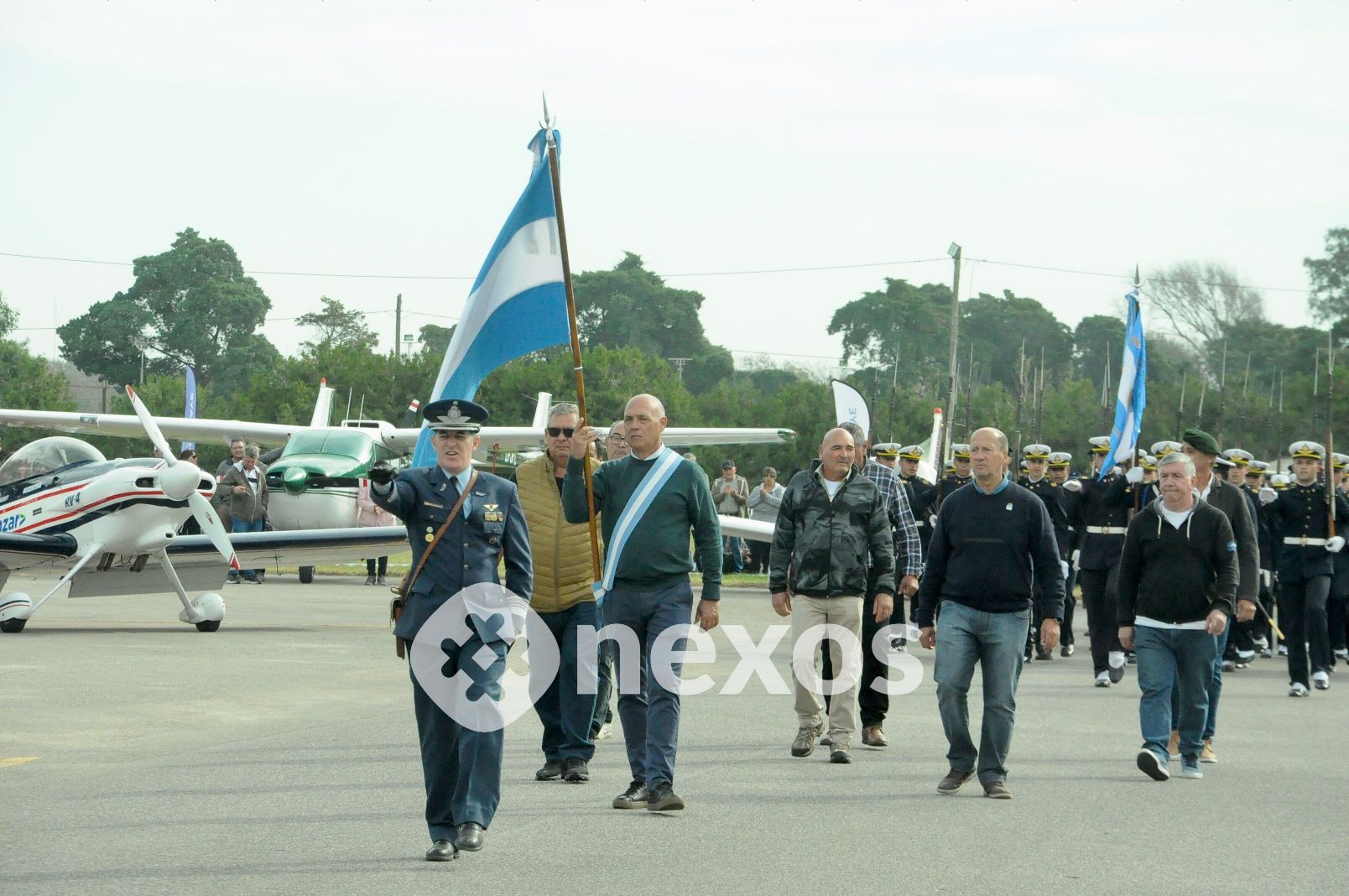 La pronunciación de los discursos alusivos llegó mediante las voces del intendente Chiapello, el presidente del Aero Club Vargas; el veterano Néstor Rodríguez, la legisladora Busso y el comodoro Triulzi.