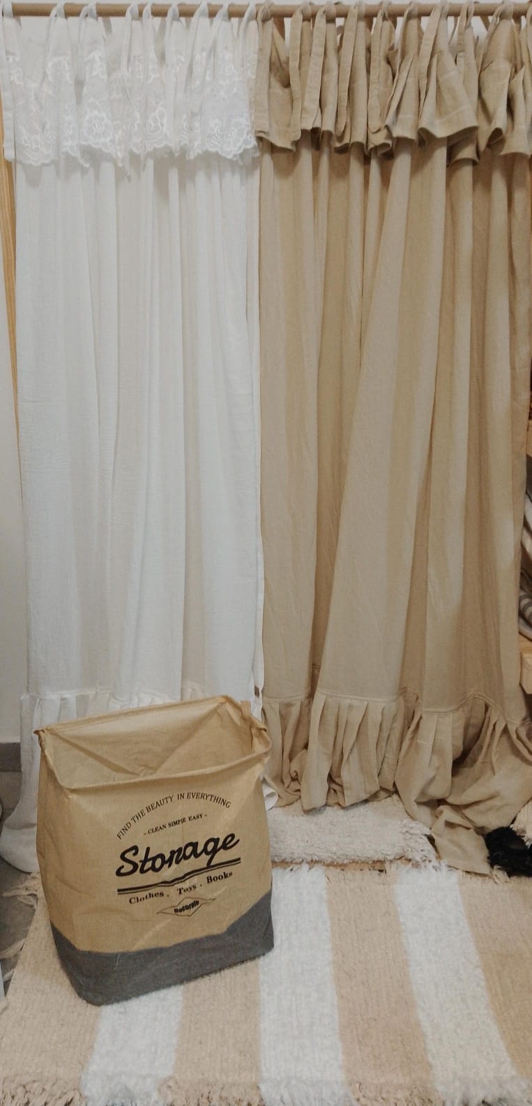 telas naturales como gasa, tusor y lienzo, seleccionadas cuidadosamente por su suavidad, elegancia y estilo atemporal. Cada producto es
