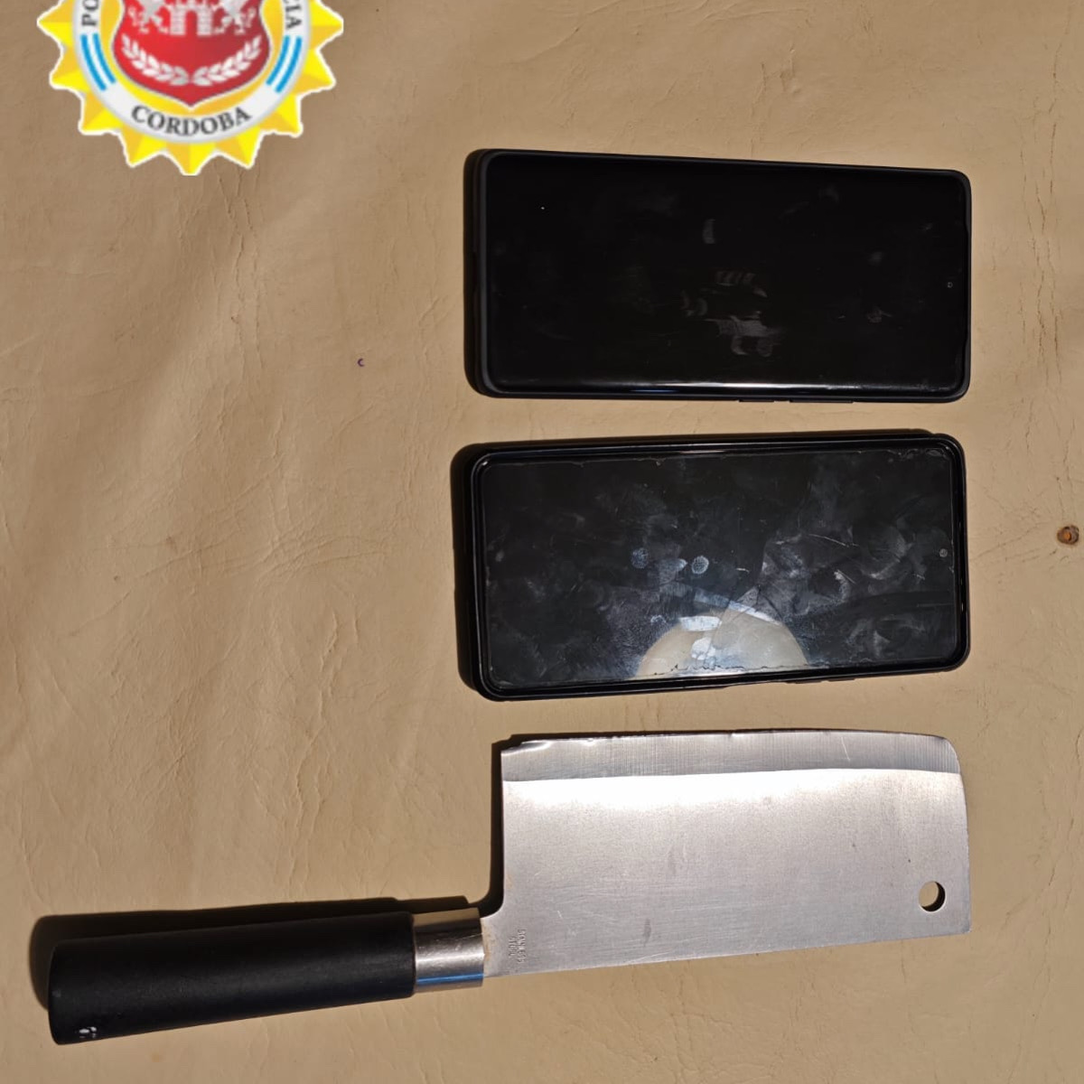 Durante el operativo, se procedió al secuestro de un cuchillo tipo chef japonés de 30 centímetros de largo, además de dos teléfonos celulares marca Xiaomi.