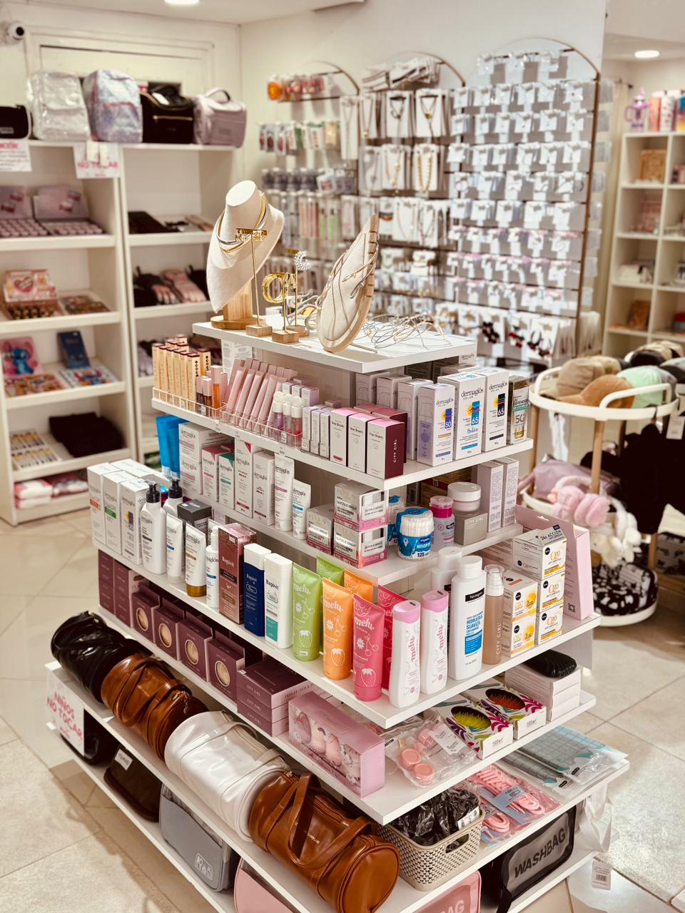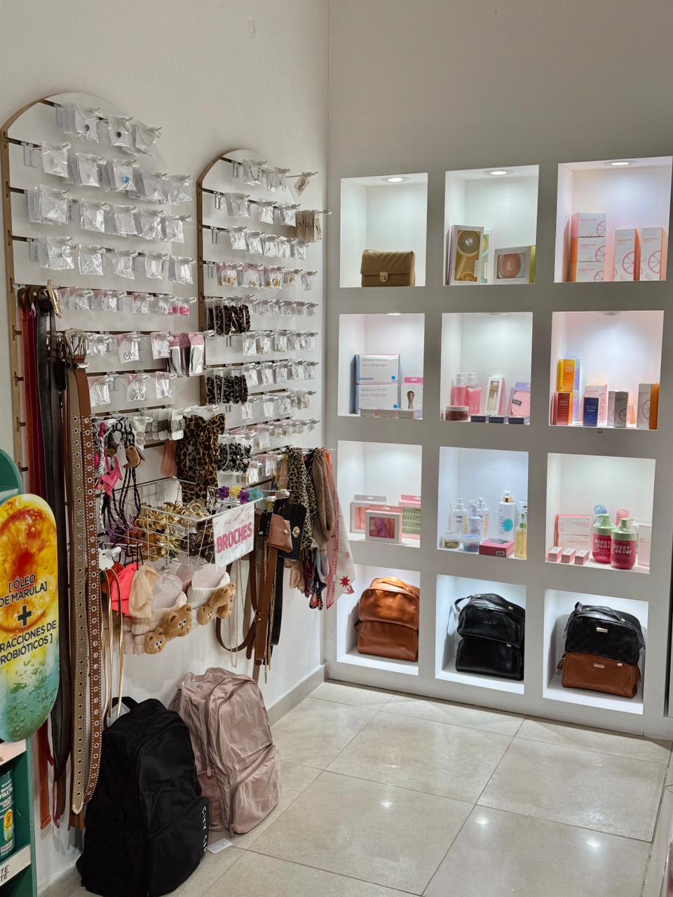 accesorios de Plata 925, acero blanco y dorado, enchapados en oro 18k, bijouterie de fiesta, cuidado del cabello y cosméticos dermatológicamente aprobados, tanto nacionales como importados. Todo pensado para sorprender con estilo.