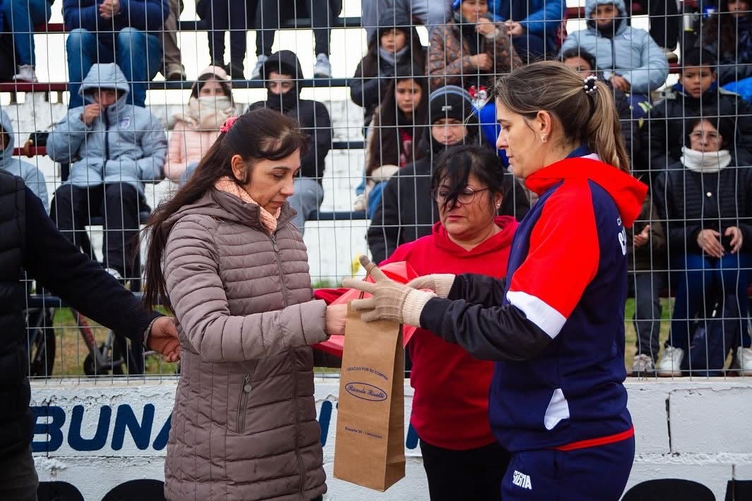 La joven mujer estuvo presente en el campo de juego del Arroyo, recibiendo el afecto de la dirigencia local de los hinchas de ambas parcialidades.