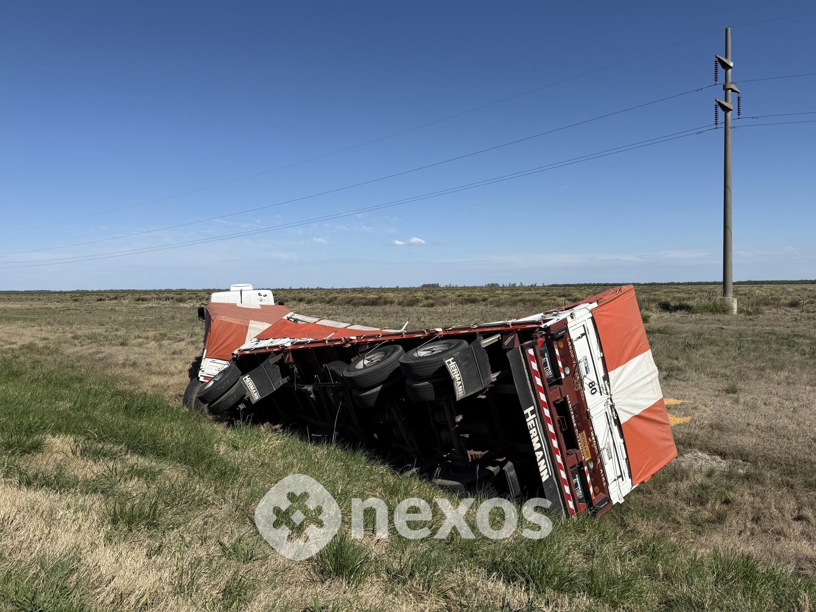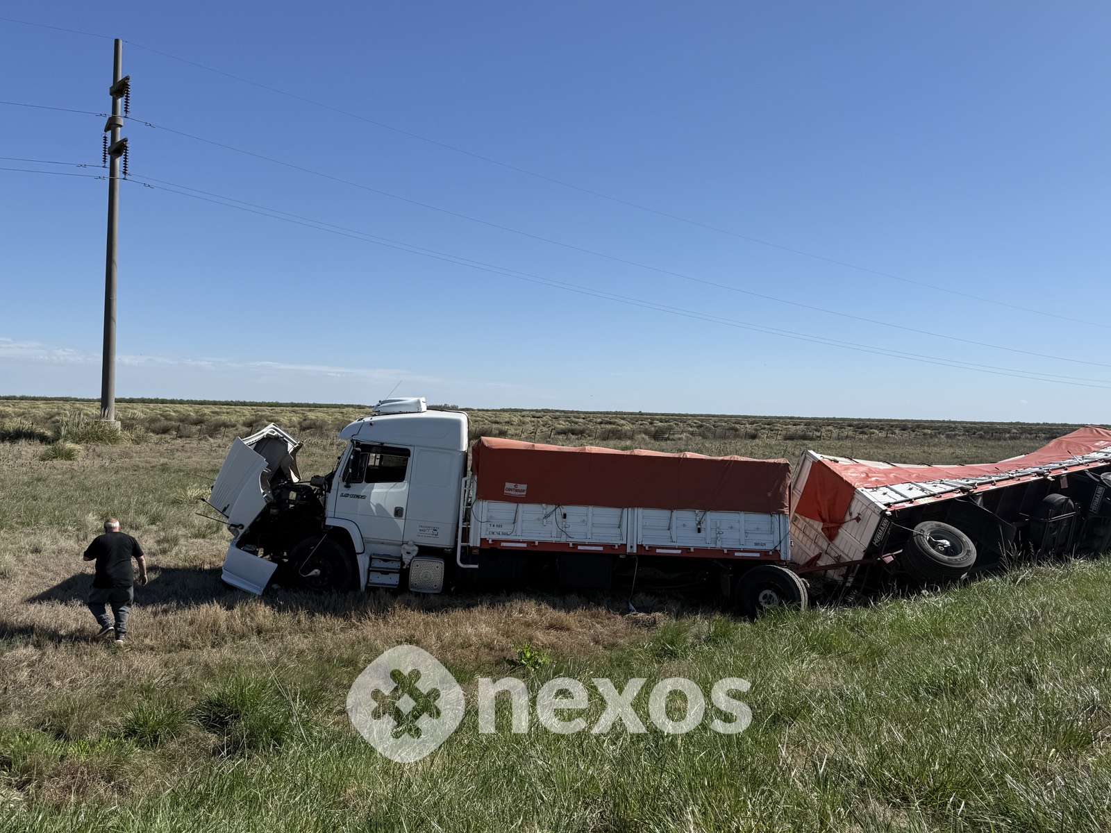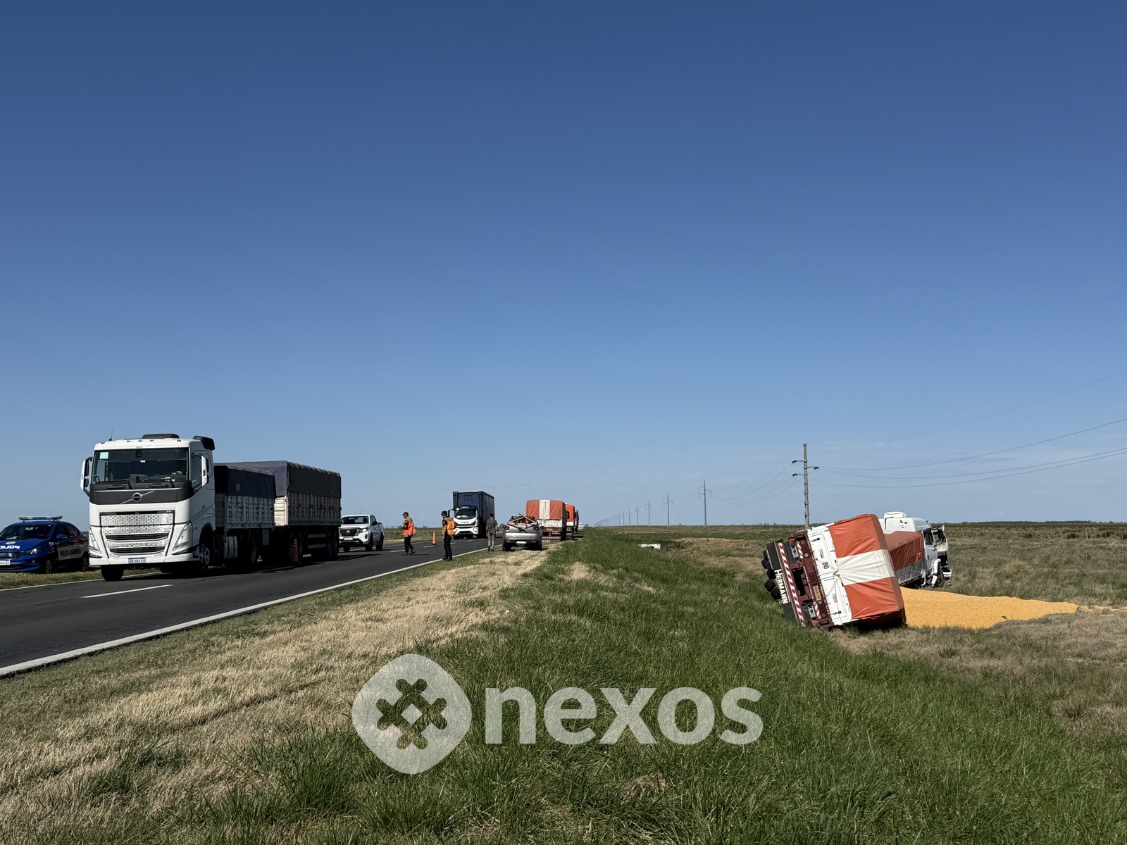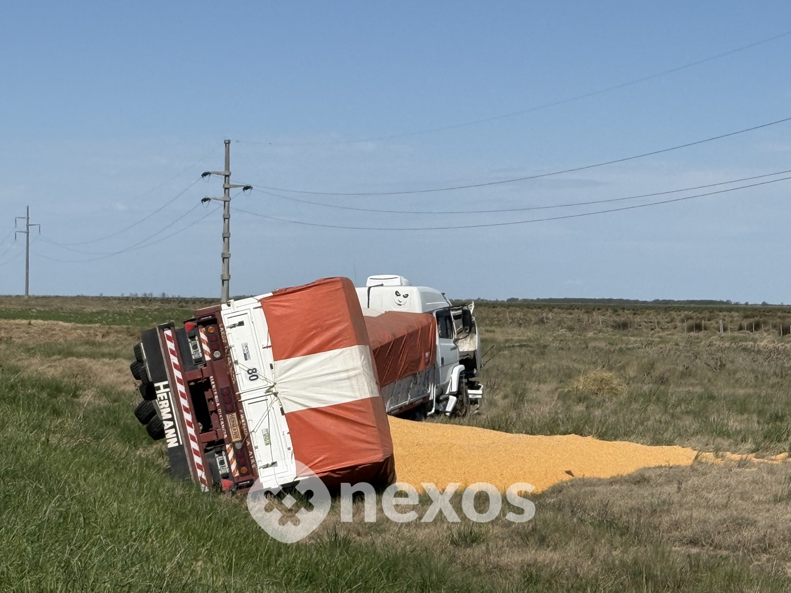 Un camión con acoplado cargado con granos perdió el control y volcó en la Ruta Nacional 7, a la altura de CuraPaligüe.