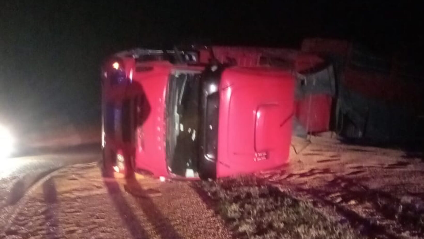 Lugar y características del siniestro: el accidente ocurrió durante la madrugada en el kilómetro 511 de la Ruta Nacional N.º 7, a poco más de 20 kilómetros de la ciudad de Laboulaye, en sentido hacia General Levalle. Un camión con acoplado que se desplazaba desde Vicuña Mackenna con destino a Rosario perdió el control por causas que aún se investigan y volcó sobre la banquina norte, quedando fuera de la calzada.