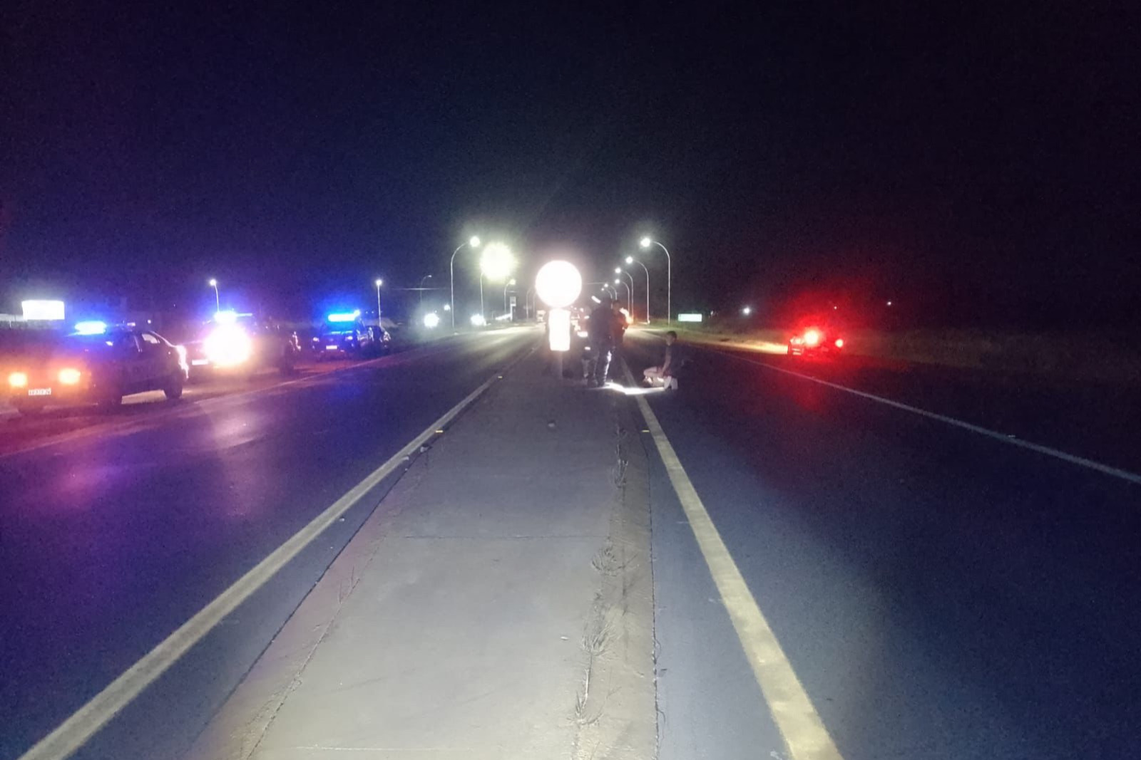hombre tendido sobre la calzada, quien habría sido embestido por un camión Scania con acoplado.