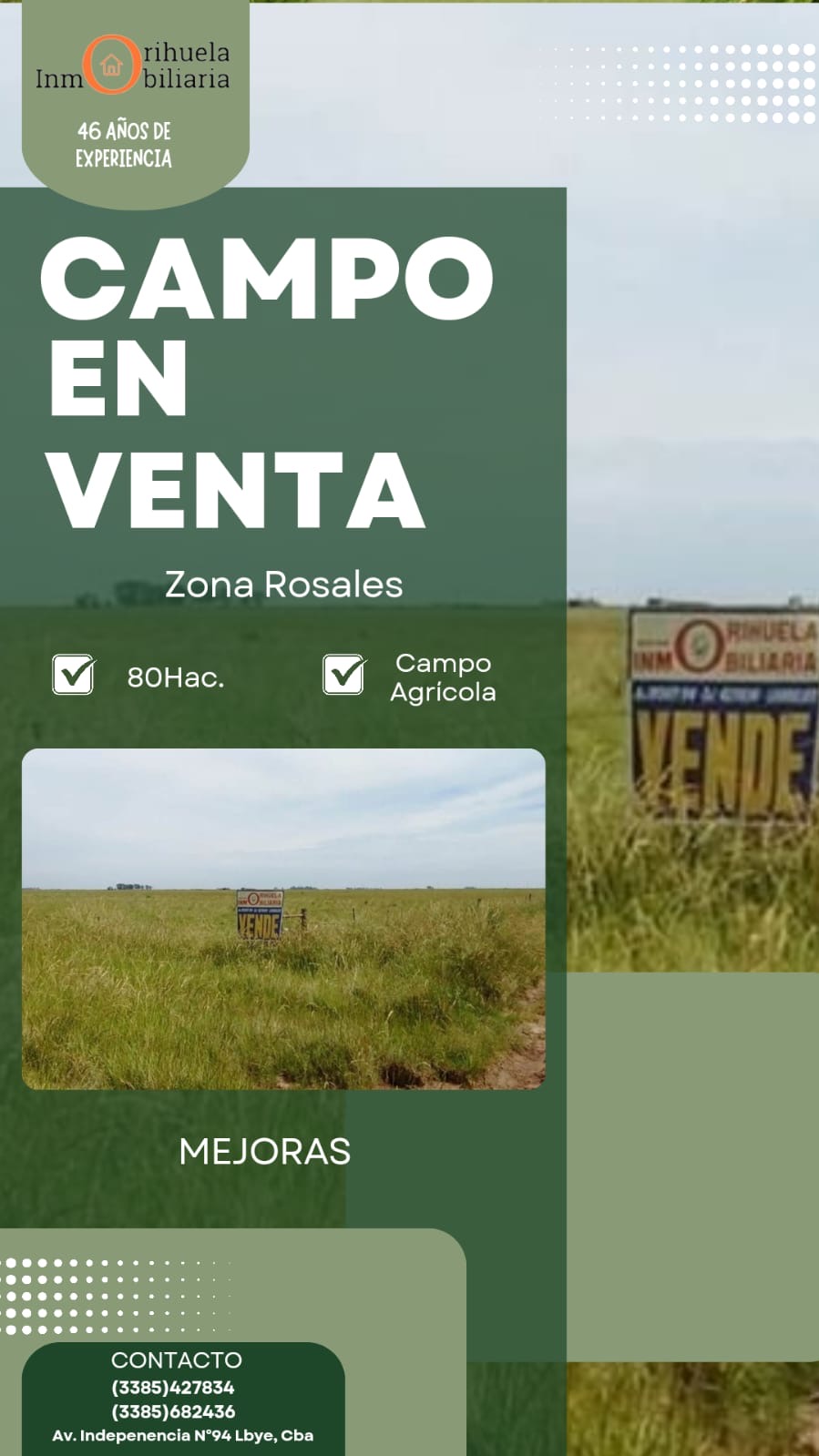 Con más de 40 años de experiencia en negocios inmobiliarios, Inmobiliaria Orihuela continúa ofreciendo en Laboulaye y la región una amplia variedad de propiedades pensadas tanto para vivir como para invertir, con opciones que se adaptan a distintas necesidades y estilos de vida.