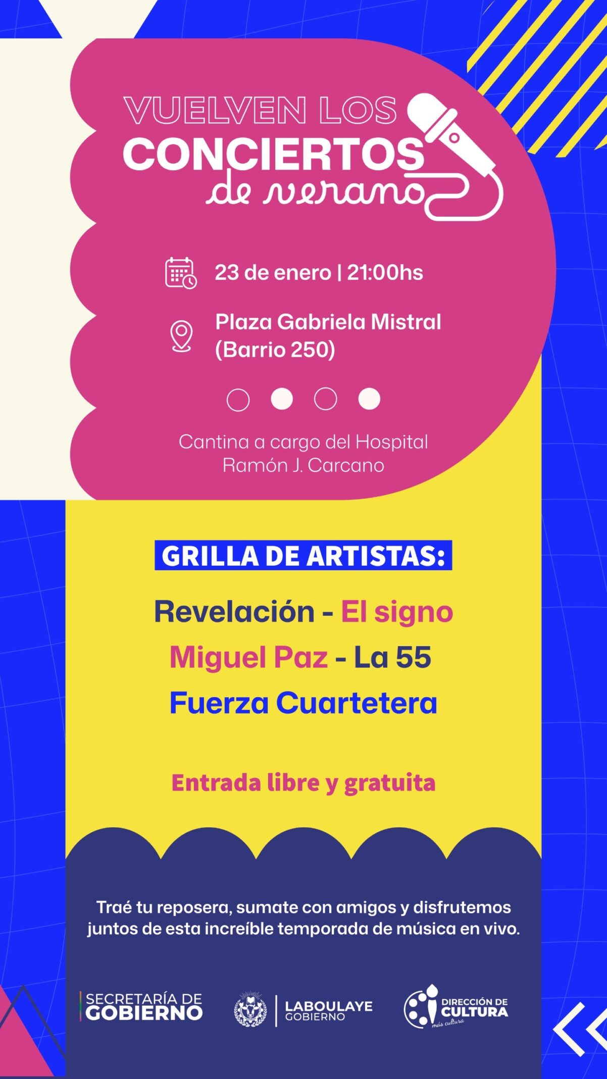 La Municipalidad de la Ciudad de Laboulaye anunció el regreso de los Conciertos de Verano, una propuesta cultural pensada para disfrutar de la música en vivo, al aire libre y en familia.