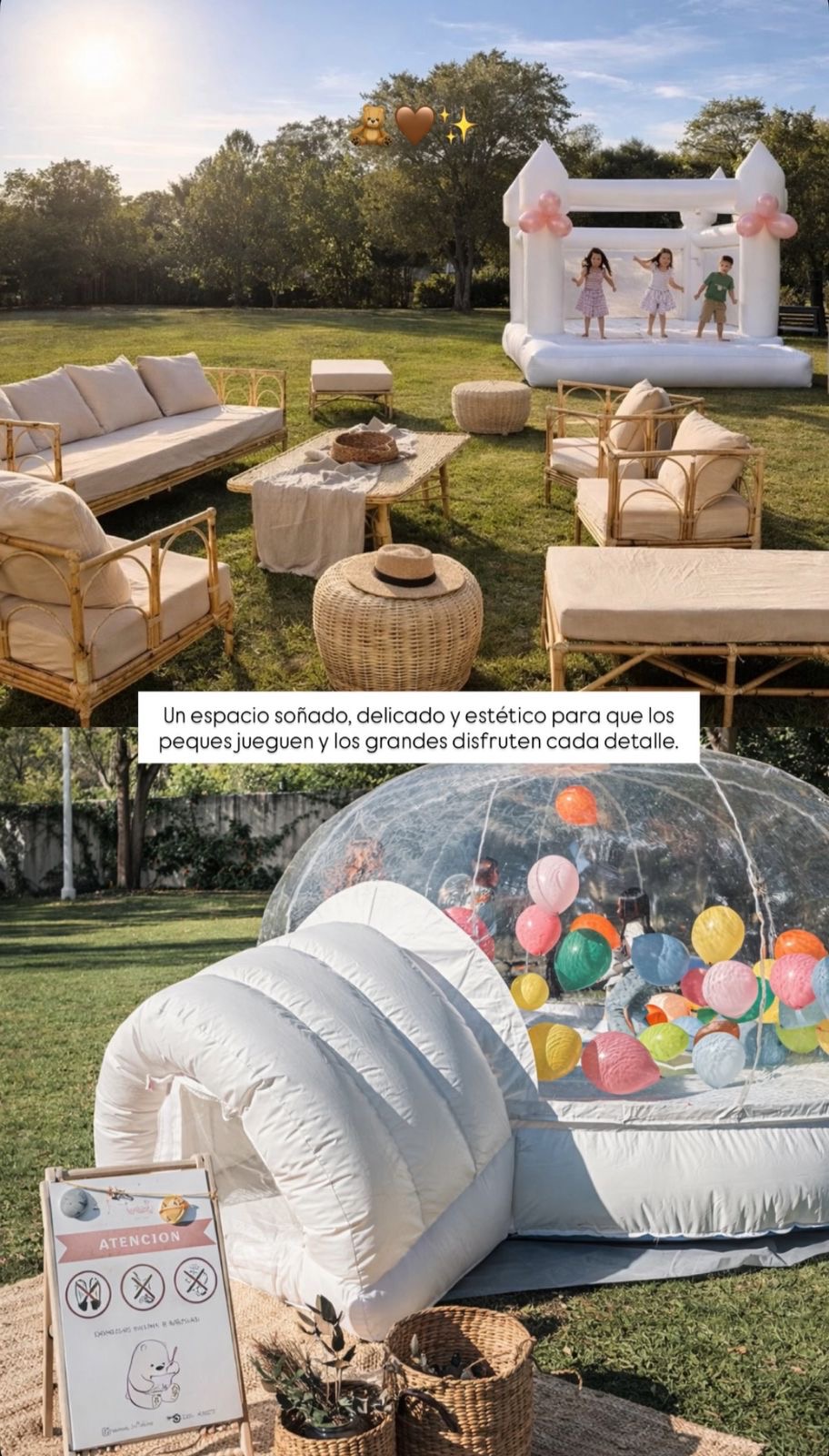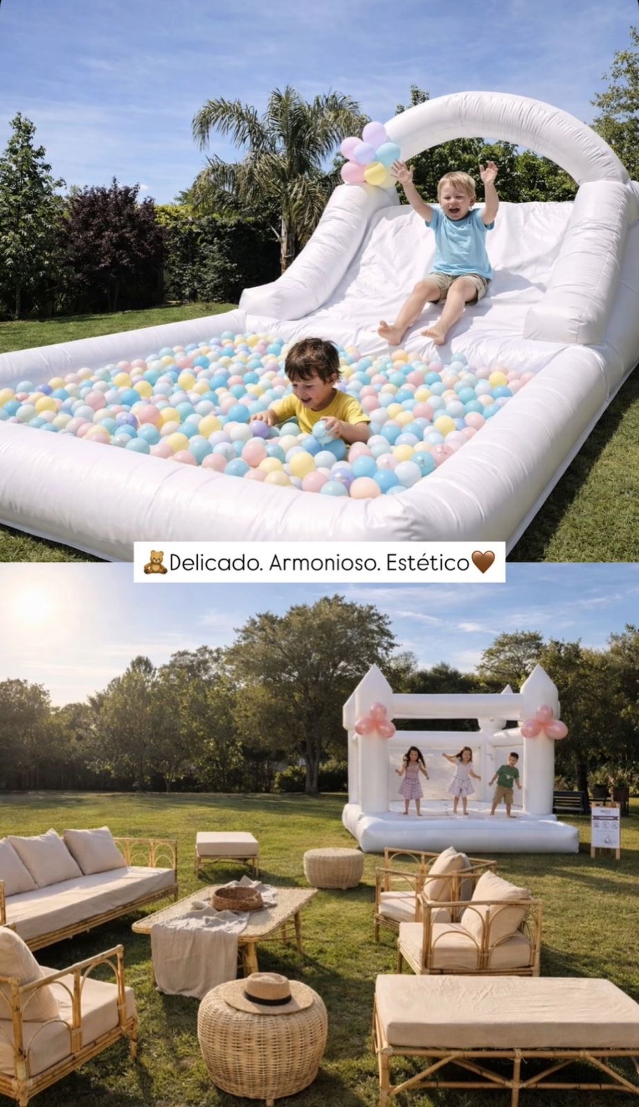 bautismos, cumpleaños de 1 a 4 años, los inflables sin límites de edad. Celebración de adultos, permitiendo que los niños también sean protagonistas del evento. Bajo el lema