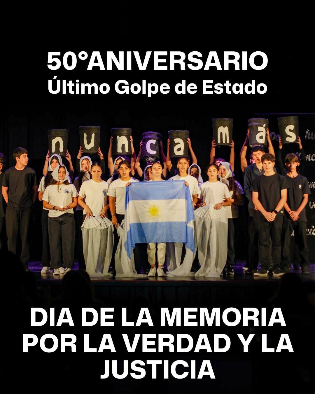 Ese Nunca Más no es sólo una frase que recuerde el pasado, es también una convicción que nos proyecta hacia el futuro. Nunca Más un país donde el silencio reemplace a la palabra, Nunca Más un tiempo donde el miedo intente apagar la libertad, Nunca Más una sociedad sin democracia”.