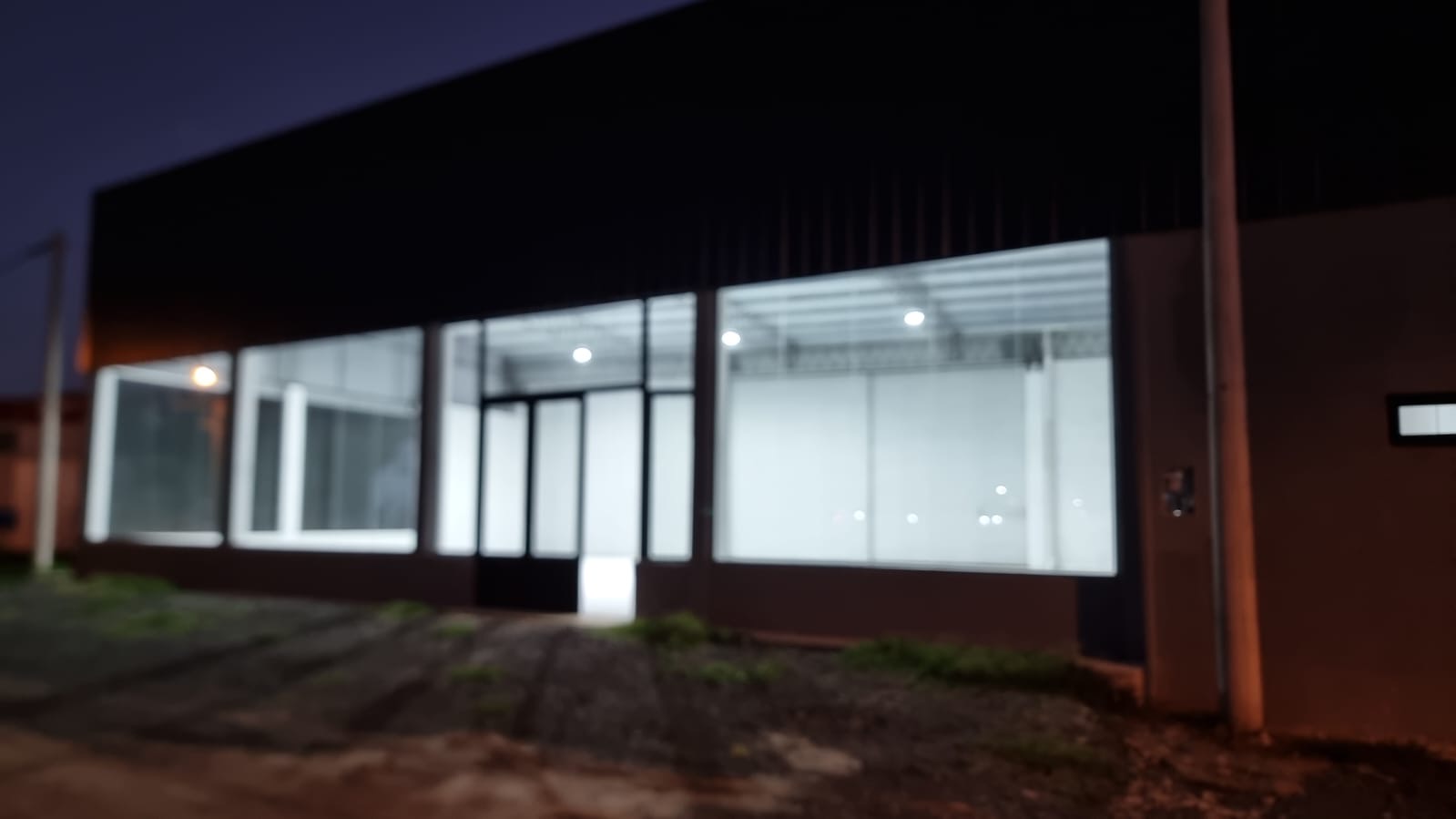 salón de exposición con baño, oficina, kitchen y dos galpones adicionales con baño, con una