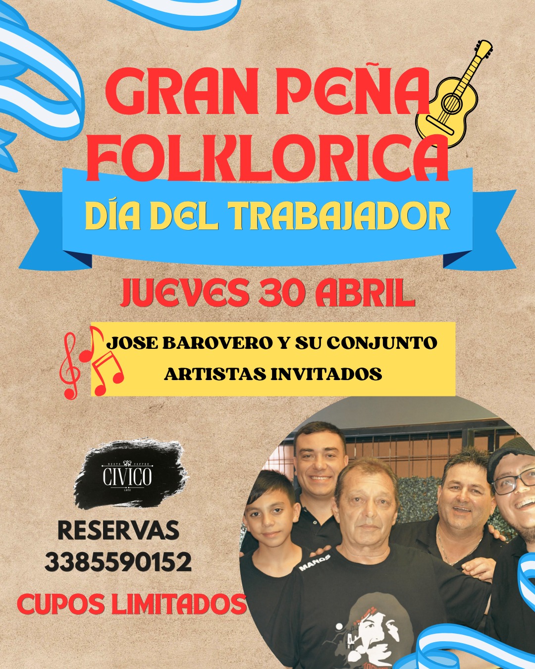 El evento contará con la presentación de José Barovero y su conjunto, quienes estarán acompañados por artistas invitados de Laboulaye y la región, prometiendo un espectáculo cargado de música, tradición y encuentro. La jornada dará inicio a las 21:30 horas.